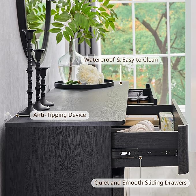 - Handle-Free Design – Clean and modern design,features Push-to-Open drawers for easy and convenient operation.High-quality metal glides ensure quiet and smooth drawer operation. Handle-free convenience—perfect for maintaining a clean, streamlined space.While the rounded edges ensure safety for kids and families.