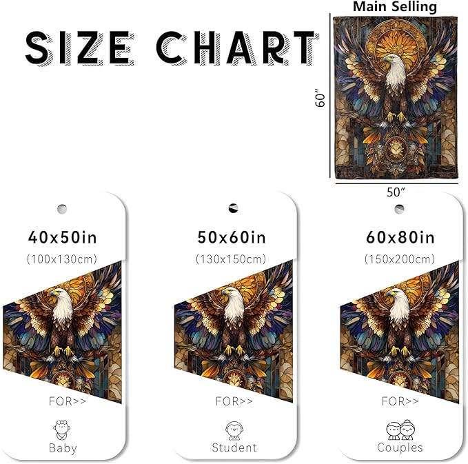 Stained Glass Eagle Blanket, Cozy Flannel Eagles with Outstretched Wings Throw Blanket for Couch Outdoor, Plush Soft Lightweight Travel Blankets for Bed Decor & Gifts, for Women Adults 50"x60"