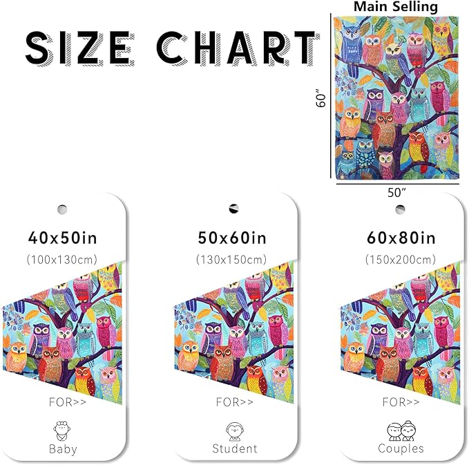 - [Family-Friendly Size and Versatility]: The blanket are available in three sizes: 40in*50in, 50in*60in, 60in*80in. Available in generous dimensions suitable for adults and kids alike, our blanket adapts effortlessly from family movie nights on the couch to relaxing afternoon naps. Ideal for both indoor relaxation and outdoor picnics.