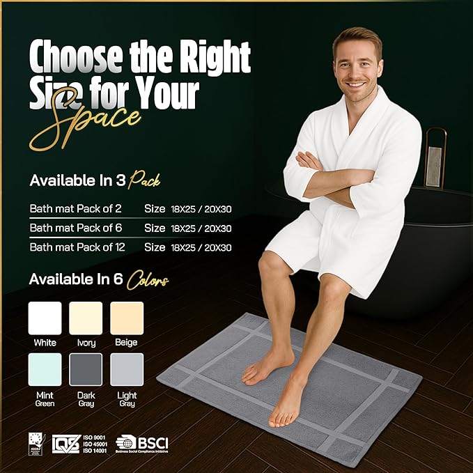 - ✅ 6-Pack Value Set – Large 20x30” Size Includes six generously sized 20x30 inch bathroom mats, ideal for home, guest, or spa use. A must-have for households needing absorbent and stylish cotton bath mats.