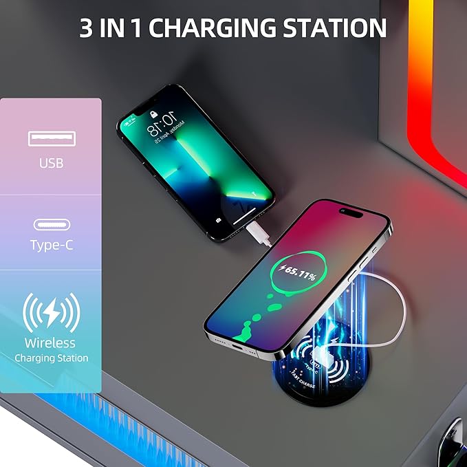 - 【3 in 1 Charging station】: This amazing vanity desk features Wireless charging(The phone supports wireless charging) USB and Type-C which expanding various device.You can apply makeup while watching beauty videos on your phone without worrying about the battery running out