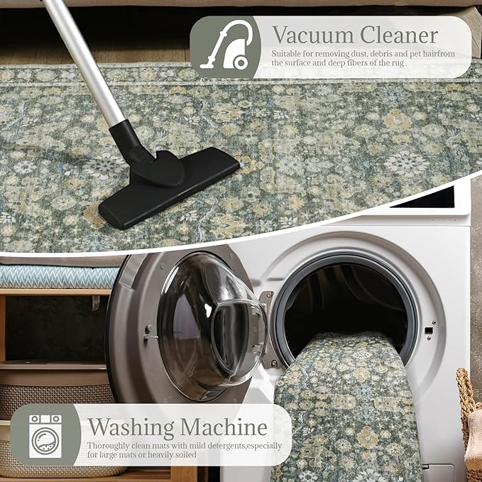 • 【Easy-Care Machine Washable Rug】 Designed for active households, this low-maintenance boho rug combines style with practicality. Conveniently machine washable (cold gentle cycle recommended), and do not add bleach. Maintain its vibrant print between washes with routine vacuuming or spot cleaning. Minor shipping creases naturally relax within days when laid flat – no extra effort needed.