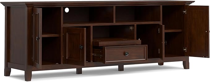 SIMPLIHOME Amherst 72-inch Wide Solid Wood TV Stand in Russet Brown, Transitional-Style Media Console for Living Room with Cable Management and Adjustable Shelves, Fits 80" TVs