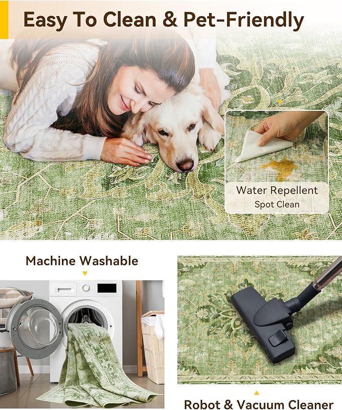 - Machine Washable Rugs Easy to Clean: the surface is water-repellent which allows for easy cleanup when beverages are accidentally spilled, as the liquid is less likely to seep in. Simply use a towel to promptly wipe away any spills. For localized stains, you can use a cleaning agent and a damp cloth for spot cleaning, or utilize a vacuum cleaner for overall maintenance. You can also put the rug in a washing machine as it is a machine washable rug.
