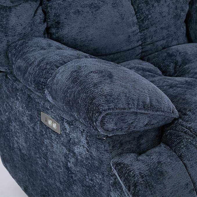 GINGO Power Oversized Recliner Chair, Extra Wide Swivel Rocking Recliner Chair, Breathable Soft Fabric Modern Single Sofa for Living Room, 90°-140° Electric Adjustable Angle, USB & Type-C Port, Blue
