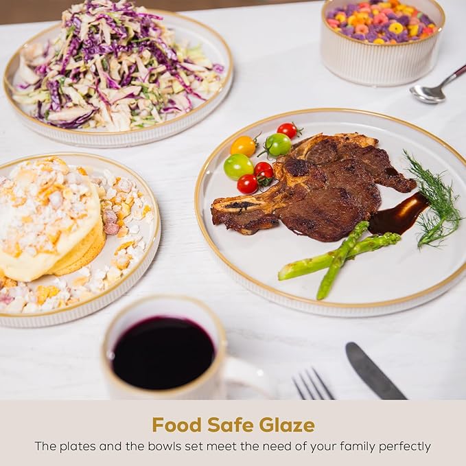 - Safe & Sustainable Dinnerware:Made from premium, organic natural clay, our stoneware is 100% lead-free and cadmium-free, guaranteeing safety for your family and the planet. Enjoy everything from hearty steaks to delicate desserts with absolute peace of mind.Fired at 2552°F for 13.5 hours, our dishes are extra-thick and heavyweight, resisting chips, scratches, and wear. They’re built to endure daily use