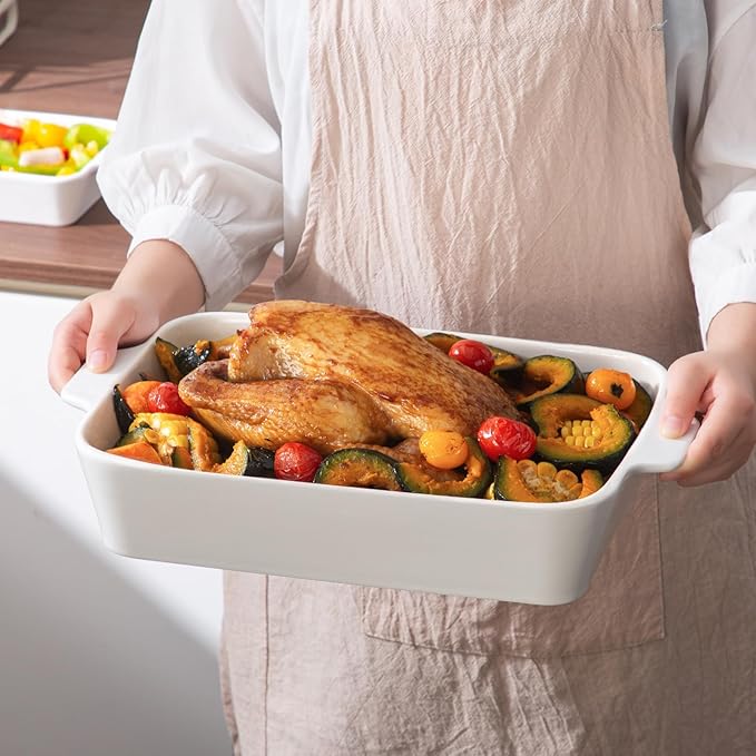 YUN TAO Casserole Dishes for Oven, Porcelain Baking Dishes, Ceramic Bakeware, Rectangular Lasagna Pans Deep with Handles for Baking Cake Kitchen,Cake Dinner,3-Piece (Set of 3, White) (White, 15.1 Inch)