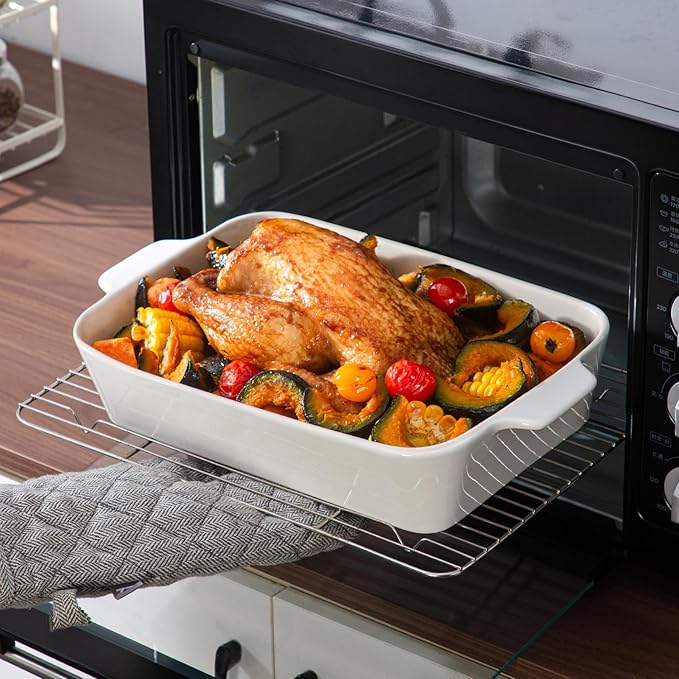 - 【TEXTURED DESIGN】The rectangular baking dish with convenient handles makes it easier for you to pick it up from the oven or freezer. This oven bakeware set can meet all your needs in the kitchen, from individual servings to large family meals, you can effortlessly find the perfect size.