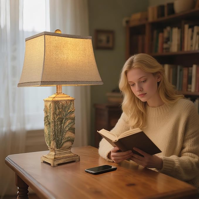 - EXCELLENT DECORATION, PERFECT GIFT: This table lamp boasts a carved pattern design paired with a palace-style linen lampshade in a matching color scheme, creating a vintage, elegant ambiance. It complements various furniture styles perfectly, making it ideal for bedrooms and living rooms. It also serves as an excellent gift for family and friends.