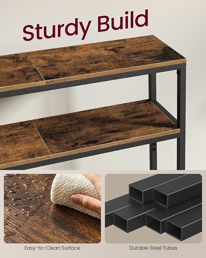 VASAGLE Console Table, 2-Tier Narrow Sofa Table with 2 Shelves, 7.9 x 31.5 x 31.5 Inches, for Living Room, Hallway, Entryway, Rustic Brown and Ink Black ULNT130K01V1