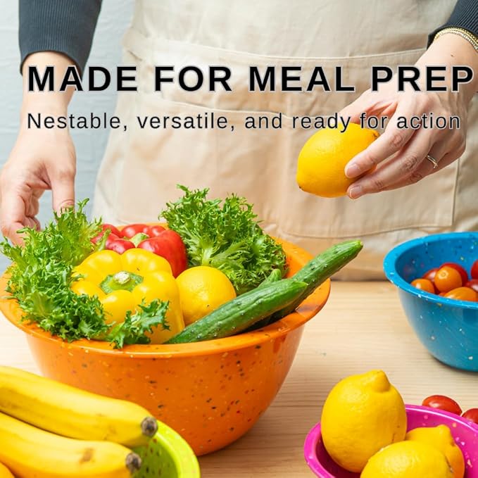 Confetti Nesting Mixing Bowls Set - 4-Piece Colorful Kitchen Bowls (18oz, 1.25QT, 2.5QT, 4QT) - BPA-Free, Dishwasher Safe, Space-Saving Design Vibrant Color