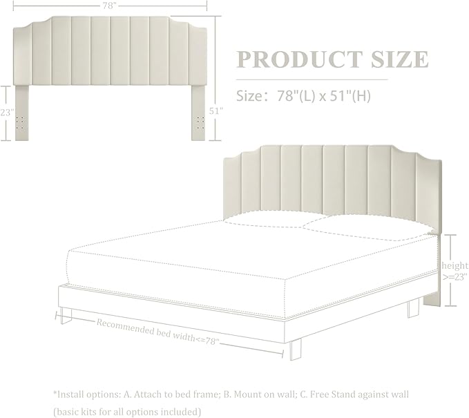 King Size Headboard Only, Velvet Wall Mounted Headboard King for Adjustable Bed Modern Upholstered Head Board Easy Assembly, Cream