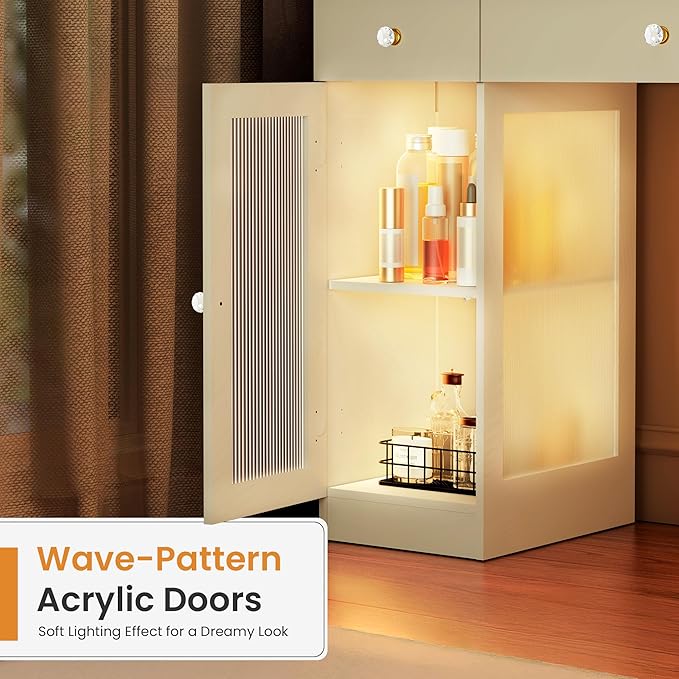 - Convenient Outlets & Perfect Gift: Built-in power outlets support hairdryers, straighteners, or chargers. This vanity table allow you to conveniently connect and charge your hair tools, smartphones, tablets, and other devices, making this vanity practical for everyday use. Also, this vanity organizer is a great present for birthdays, Valentine's Day, Mother's Day, and Christmas