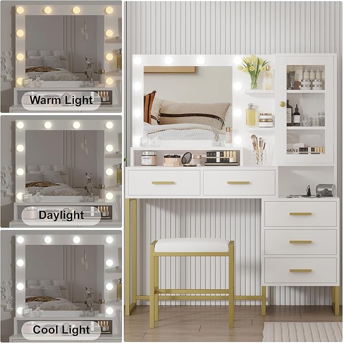 - Makeup Every Time: Enhance your beauty routine with our makeup vanity desk equipped with 10 adjustable LED bulbs and three light modes. Create the perfect lighting ambiance to achieve flawless makeup every day.