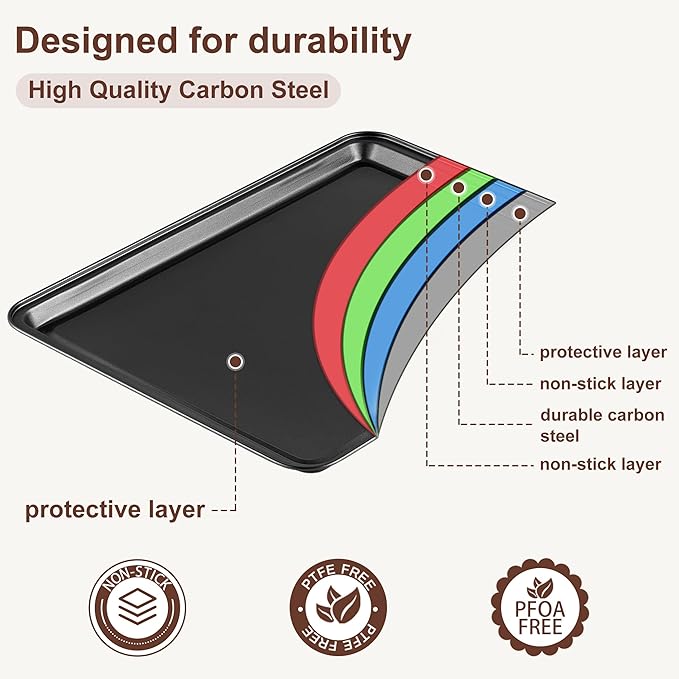 - [Premium Materials & Long Lasting Use] The bakeware sets from Funnydin are built to last. It is constructed from high-quality carbon steel. With a design that prioritizes durability, these baking pans can endure prolonged use and high-temperature environments. From cookies to cakes, this Baking Set will be your go-to choice for achieving professional results at home. The long-lasting quality of this baking pans set makes it a worthwhile investment for any baking enthusiast