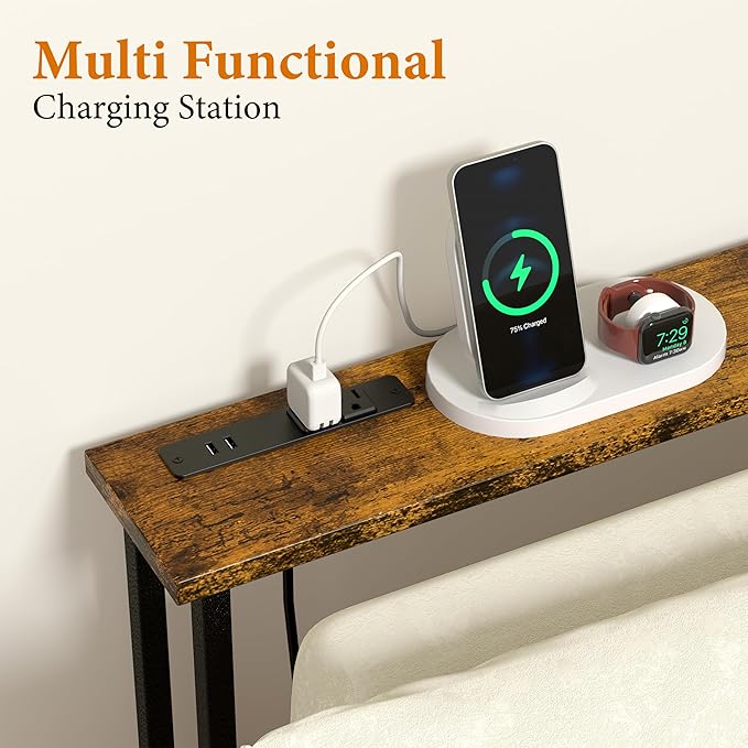 - 【Multi-Functional 】Equipped with a standard 120VAC outlets & 2 USB Ports, and a 4.9' power cord, this behind sofa table efficiently utilizes space for charging laptops and mobile phones. Its built-in power hub conveniently powers lamps, phones, laptops, and more, making it an ideal choice for various electronic devices.