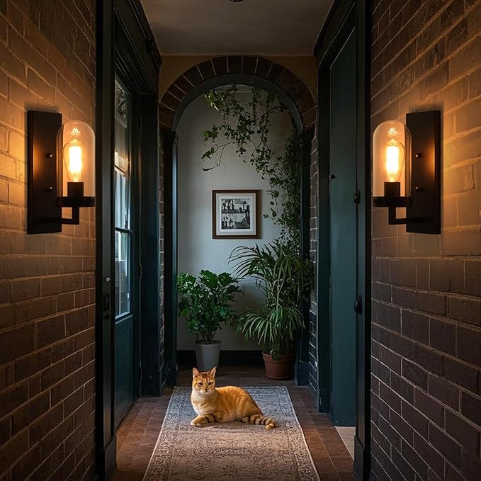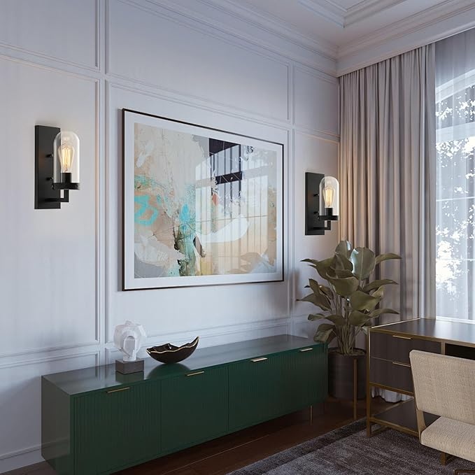 - STYLISH DESIGN: Black wall sconces set of two are made of sturdy metal and the clear glass shade can protect the bulb well. Gorgeous wall sconces can be paired with modern or vintage spaces, adding more flavor to your home lighting