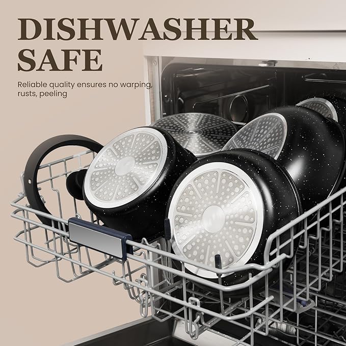 - γπππ¦π¬ π πππ‘π§πππ‘γEasy Maintenance: Clean the pans set nonstick cookware set with mild dish soap, warm water, and a soft sponge or cloth. Use silicone, plastic, or wooden utensils to protect the nonstick coating. For optimal lifespan, please hand wash. If using a dishwasher, remove and dry promptly.