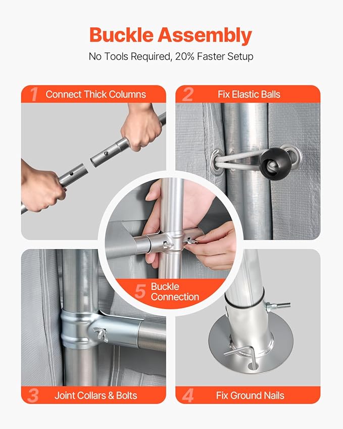 - Buckled Easy Assembly: This outdoor portable storage shelter can be quickly and easily assembled using buckle connectors with T-joints and cross joints, requiring no tools. With detailed assembly instructions, it ensures a fast and straightforward one-on-one connection.