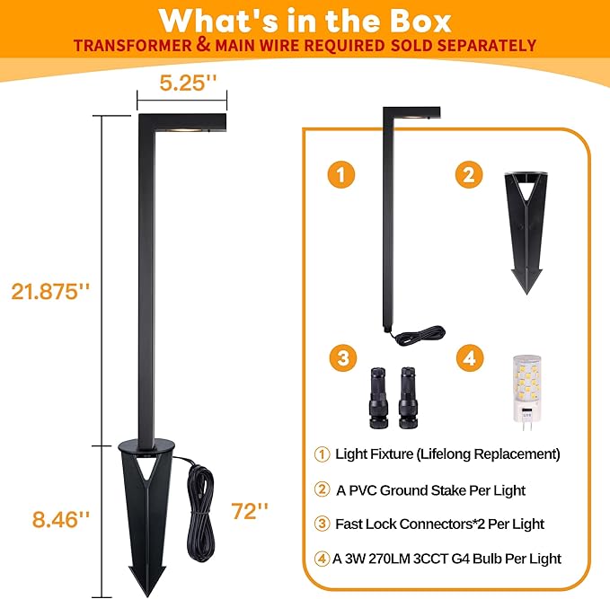 - ๐-๐๐๐ ๐๐จ๐ฐ ๐๐จ๐ฅ๐ญ๐๐ ๐ & ๐๐๐ ๐๐๐๐๐ญ๐ฒ: Requires wiring to a transformer (not included). ETL certified stable pathway landscape lighting ensures electrical safety. LED bulbs help to lower electric bills and save energy. Perfect for your gardens, driveway, pathway, patios, or front yard