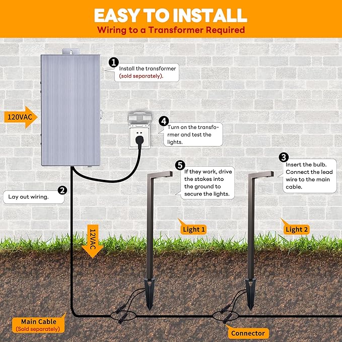 - ๐-๐๐๐ ๐๐จ๐ฐ ๐๐จ๐ฅ๐ญ๐๐ ๐ & ๐๐๐ ๐๐๐๐๐ญ๐ฒ: Requires wiring to a transformer (not included). ETL certified stable pathway landscape lighting ensures electrical safety. LED bulbs help to lower electric bills and save energy. Perfect for your gardens, driveway, pathway, patios, or front yard