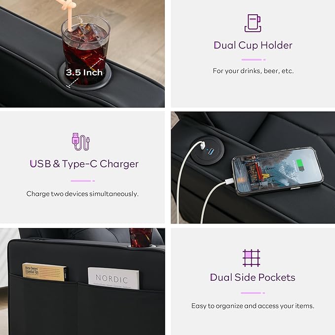 - Built-In USB Ports, Cup Holders & Side Pocket: We gave this fold out chair bed an upgrade—built-in USB and Type-C ports so you can charge two devices at once while relaxing. No need to reach for a wall outlet while streaming or scrolling. The side pocket keeps essentials like phones, magazines, or your remote within easy reach. And the dual cup holders? Perfect for keeping your coffee and water by your side while you work from home or catch up on your favorite show. It’s the little details that make this convertable sleeper chair extra functional.