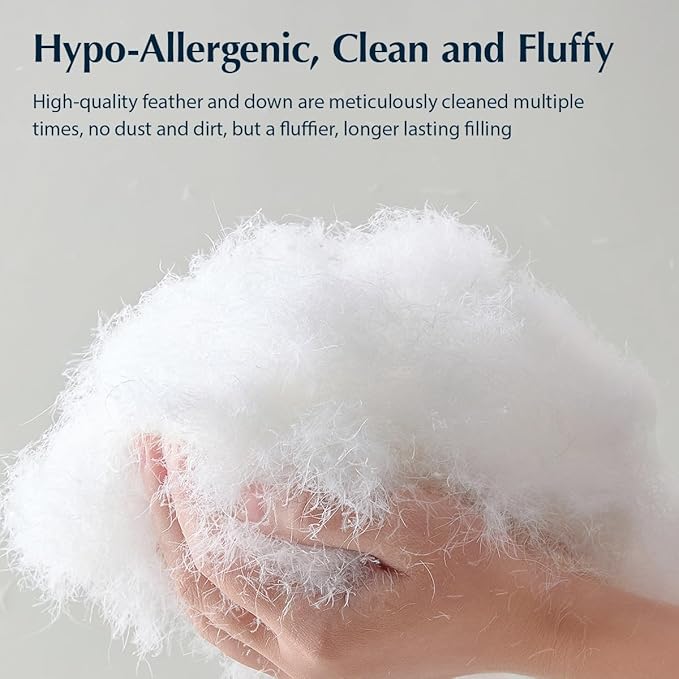 - Hypoallergenic & Skin-Friendly: Upgraded with a 430-thread-count downproof fabric for a silky soft and hotel-quality feel. Filled with meticulously washed filling to guarantee cleanliness and low odor. Perfect for sensitive sleepers looking for a fresh, breathable sleep.
