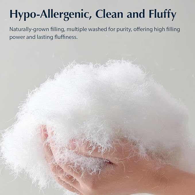- Hypoallergenic & Skin-Friendly: Upgraded with a 430-thread-count downproof fabric for a silky soft and hotel-quality feel. Filled with meticulously washed filling to guarantee cleanliness and low odor. Perfect for sensitive sleepers looking for a fresh, breathable sleep.
