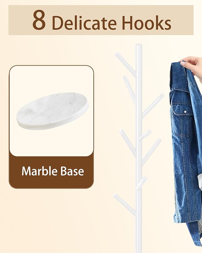 - 8 HOOKS AND HIGH-CAPACITY STORAGE: The 8 hooks on this coat tree stand are evenly distributed on the left and right sides, which can easily store coats, jackets, scarves and other clothes. This tree-shaped coat rack freestanding is both sturdy and practical as well as artistic
