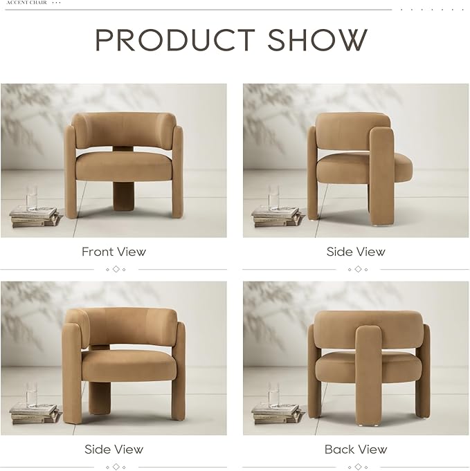 - 3-Legs Design & Curved Backrest: The barrel chair has a gently curved backrest that wraps around you, creating a cozy and inviting feel. The sleek, minimalist three-legged design offers stable support while adding a modern, stylish touch. With clean lines and timeless design, the living room armchairs effortlessly complement a variety of interior styles—from contemporary to Scandinavian and beyond.