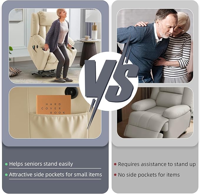 - [Electric lifting and standing assistance]Our balance lifting mechanism is driven by a powerful German OKIN motor, providing seamless standing assistance. Smoothly enhancing the overall stability of the chair, allowing users to effortlessly ascend without putting pressure on their back or knees. This feature is particularly beneficial for elderly people, pregnant women, or those who have difficulty standing from a sitting position
