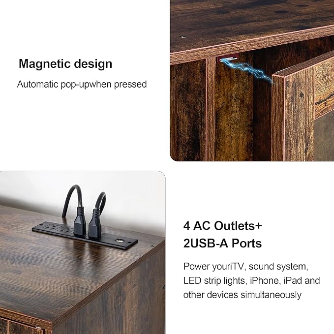 - Deformable TV Stand: VECELO living room tv stand has three assembled shapes for living room, bedroom. Place the tv stand with storage in different style per your preference. Equipped with LED light strips, 4 power sockets and 2 USB ports, whether to power TV, other devices, or charge USB devices, this TV Console Table not only meets your needs, but also makes your desktop tidy.