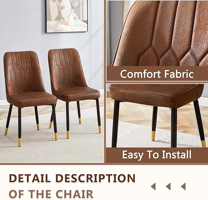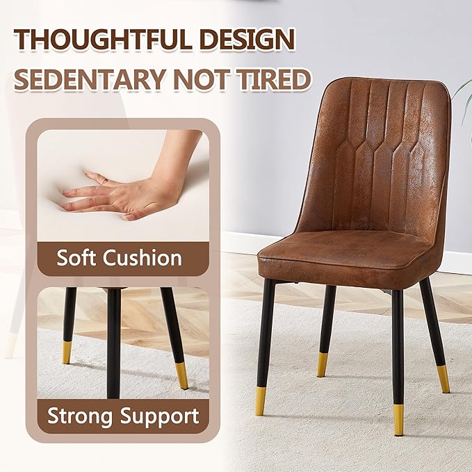 - PU Leather Chairs with High-Density Cushion:Each dining chair is upholstered in smooth PU leather with a high-density sponge cushion for ultimate comfort. The ergonomic backrest, metal frame, and non-slip foot mats ensure stable support for long meals