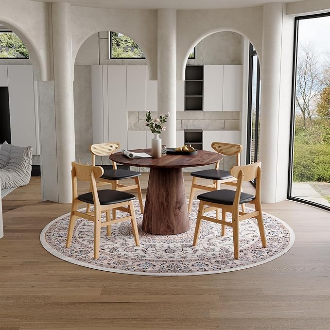 - 1-Inch Thick Tabletop & Durable Construction:Built with a 1-inch thick tabletop and a reinforced MDF base, this wooden round dining table offers long-lasting support. Smooth edges and sturdy connecting plate enhance durability in kitchens and small spaces