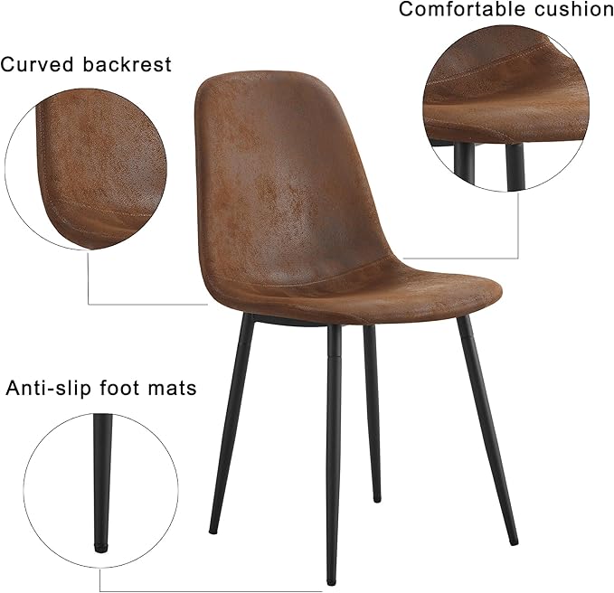 - Comfortable Suede Chairs with Cushioned Seat:Each dining chair features a high-density foam cushion wrapped in soft suede-like fabric. The ergonomic curved back and anti-slip legs provide comfort and support for long meals or gatherings
