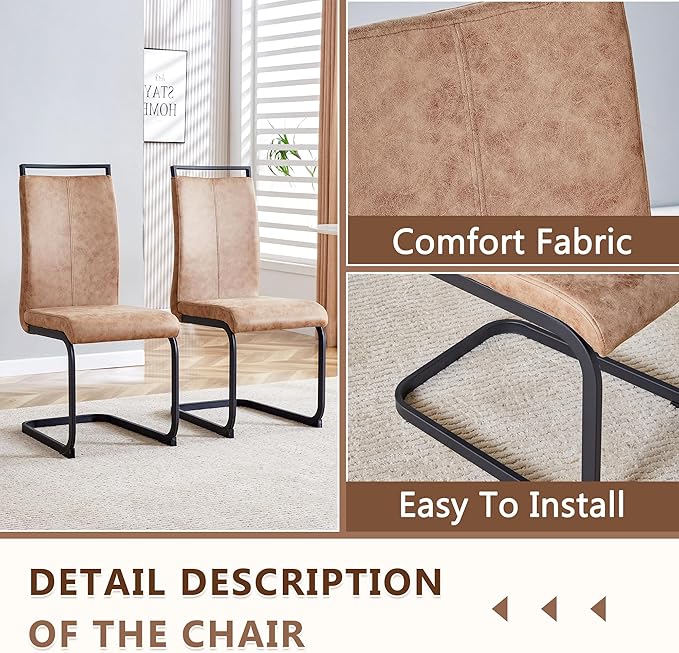 - PU Leather Chairs with High-Density Cushion:Each dining chair is upholstered in smooth PU leather with a high-density sponge cushion for ultimate comfort. The ergonomic backrest, metal frame, and non-slip foot mats ensure stable support for long meals