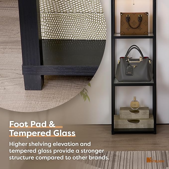 Floor Lamp with Shelves, Modern Standing Lamp with Tempered Glass, Large Display Shelf Lamp, Tall Lamps with Shelves for Living Room, Bedroom, Office, Black
