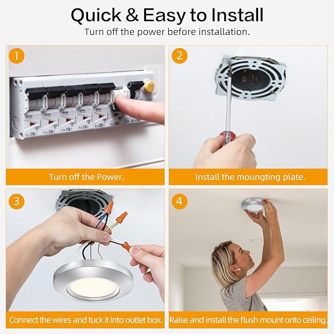- LED Light Fixtures Ceiling Mount: With simple twist and lock, enclosed construction of led dimmable flush mount ceiling light contra-build the bug free zone.