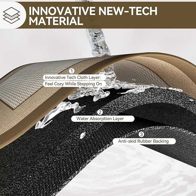 - Super Absorbent & Quick Drying: Featuring a nano-porous absorbent layer, our quick dry bath mat instantly captures dripping water. The diatomaceous earth surface promotes fast drying in natural air, effectively minimizing watermarks for a consistently fresh bathroom mat.