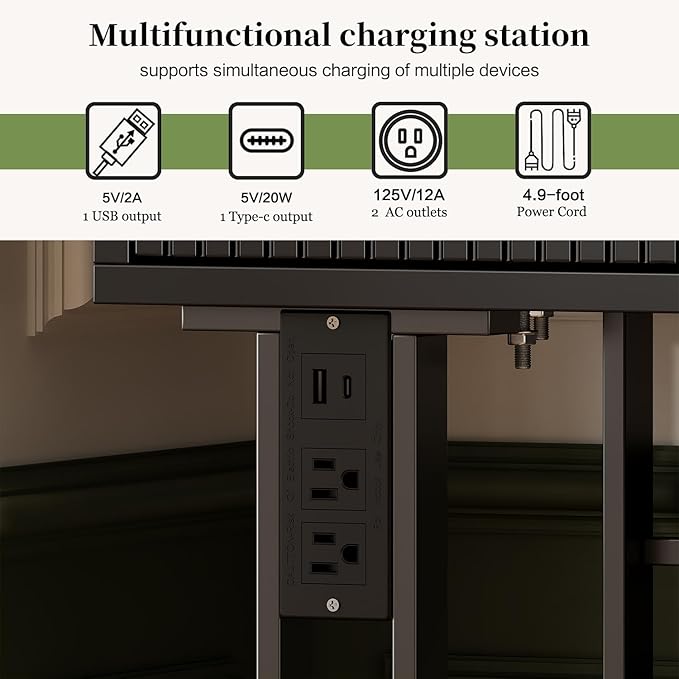 - 【Built-in Power Strip】Upgrade design!This makeup table equipped with a power strip that has 2 standard plug sockets ,1 USB ports and 1 T-C with a 4.9-foot power cord,convenient for the LED lights,hairdryer, curling iron, and charge your phone, tablet, or other electronics.