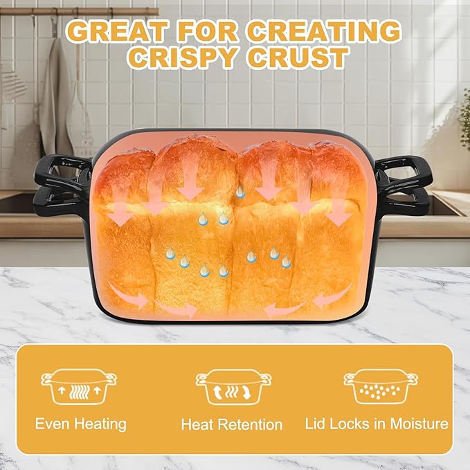 - Special Bonus: The cast iron bread oven comes with recipes and oven mitts for easier baking and safer handling, making it a thoughtful and practical gift for anyone who loves baking