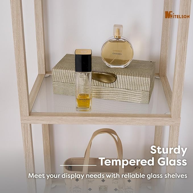 Floor Lamp with Shelves, Modern Standing Lamp with Tempered Glass, Large Display Shelf Lamp, Tall Lamps with Shelves for Living Room, Bedroom, Office, Ashen Oak