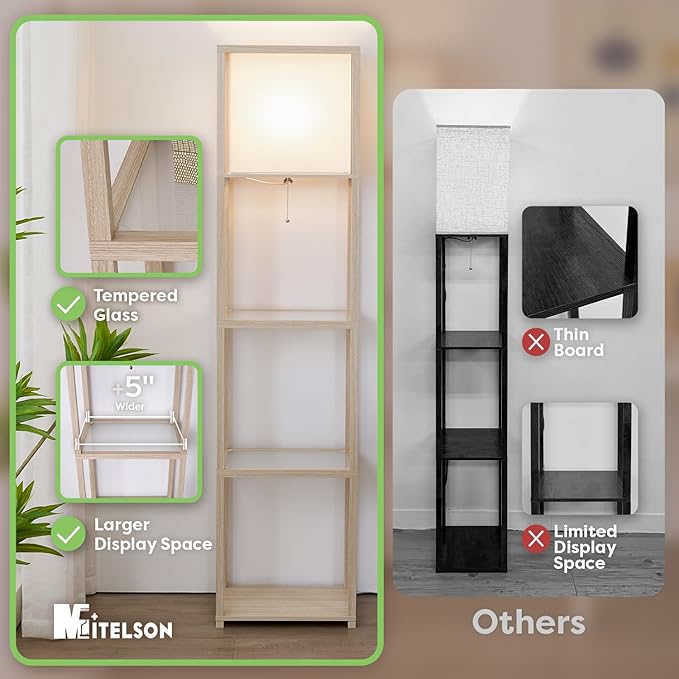 - ✔Multi-Purpose Display: This isn’t just a floor lamp—it’s a multi-purpose shelf too. Use it to display your favorite books, children’s toys, photo albums, or decorative items to show off to friends and family. With its upgraded sturdy frame and glass shelves, it’s strong, stable and holds more items than ever. Place it next to your bed, desk, sofa, or TV stand—it will fit right in anywhere in your home.