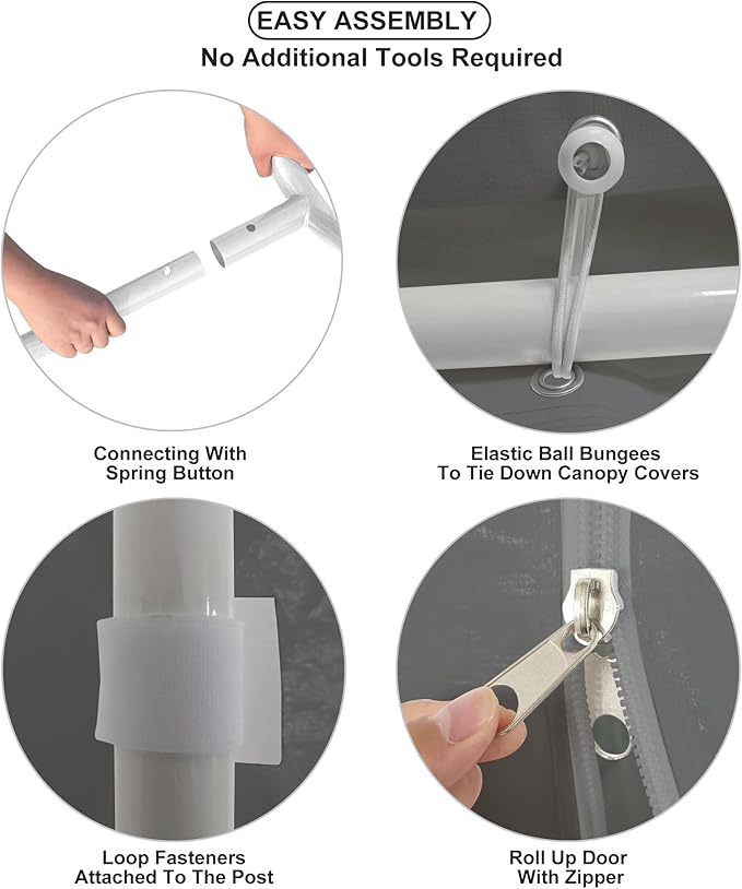 - Heavy duty garage structure: The shed support rods are made of rust proof powder coated steel frames, which can prevent debris, peeling, rusting, and corrosion. Composed of 8 support rods with a diameter of 1.5 inches and a thickness of 1.2 millimeters, the entire steel carport is safer and more stable.