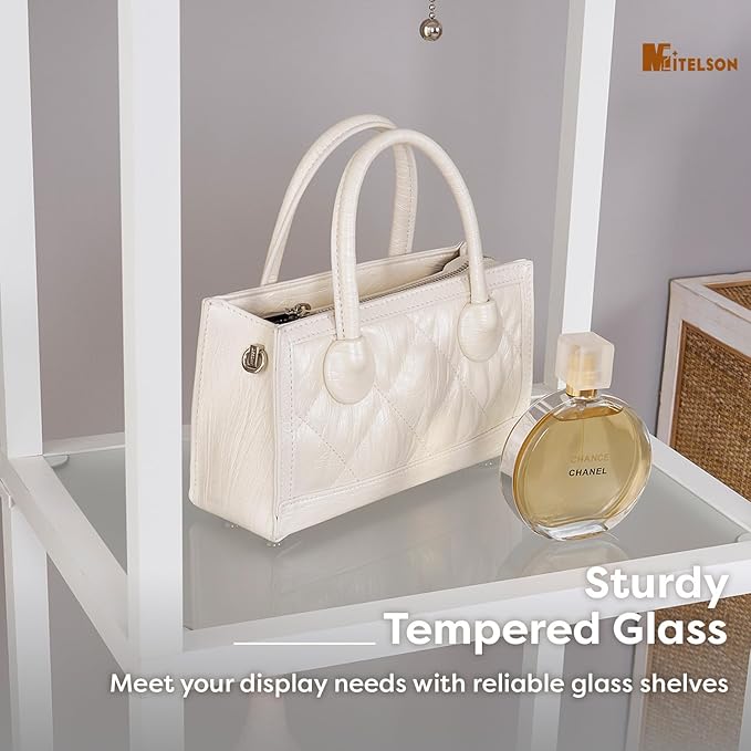 Floor Lamp with Shelves, Modern Standing Lamp with Tempered Glass, Large Display Shelf Lamp, Tall Lamps with Shelves for Living Room, Bedroom, Office, White