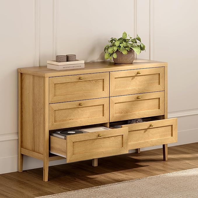 - 【Elegant Design】Discover the perfect fusion of timeless charm with our stunning 6 drawer dresser. Expertly crafted with an eye for detail, the Thickened framework add refinement to its aesthetic. The golden handle adds a touch of sophistication that complements the overall aesthetic, ensuring this storage dresser's seamless integration into your home