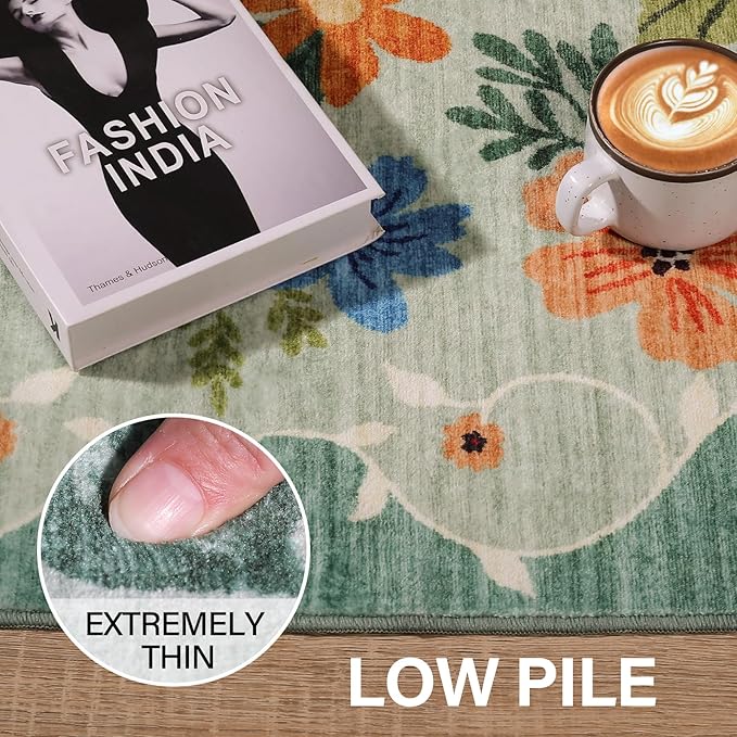 - Washable Rug: Designed for convenience, our floral rugs for bedroom resists stains with easy wipe-offs and tackles daily dust with a simple vacuum or sweeping robot. For thorough cleaning, it’s washing machine-safe.