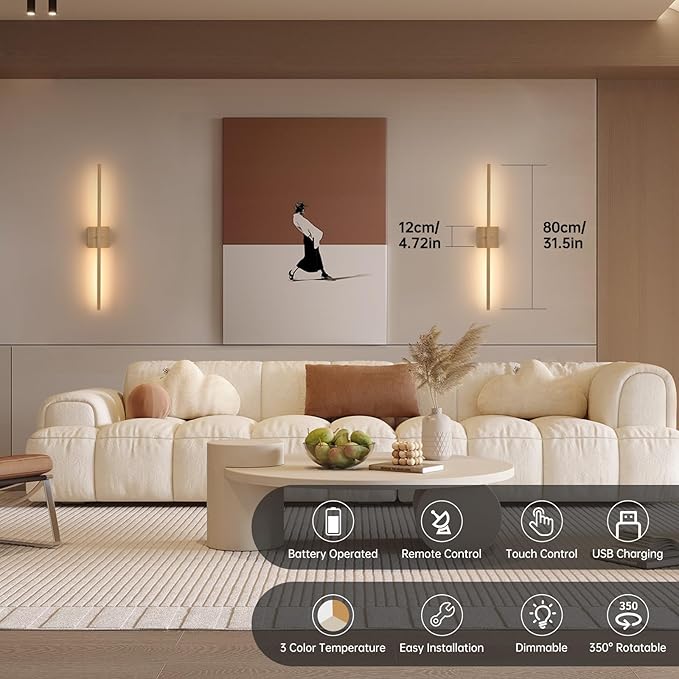 - 【Remote Control & Touch Control】Wireless wall sconce with remote control, that can be turned on/off and the brightness adjusted by remote control or touch the button. Choose timing(30M, 1H or 2H). Maximum control distance of the remote control is 15 feet. Tips: please touch the button on the charging case for the first use to activate the remote control.