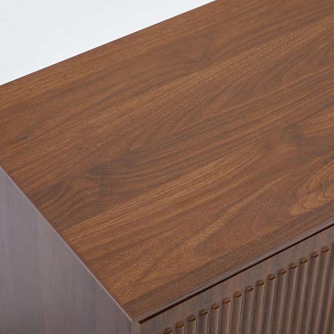 - 【Elegant Walnut Finish & Modern Design】The walnut tv stand adopts a classic double-door design. The wavy door elegantly integrates the classic walnut color and is paired with golden handles, making it easy to blend into various decorative aesthetics. The lines are simple, the contours are smooth, and the details are exquisite, adding a fashionable touch to your living room