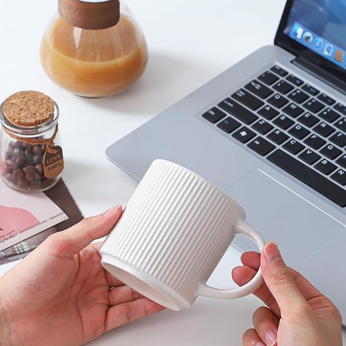 Coffee Mugs Set of 4, 12 OZ Ceramic Coffee Mugs with Handle, Vertical Stripes Coffee Cups Set for Latte/Tea/Cocoa/Milk, Microwave and Diahwasher Safe (White)